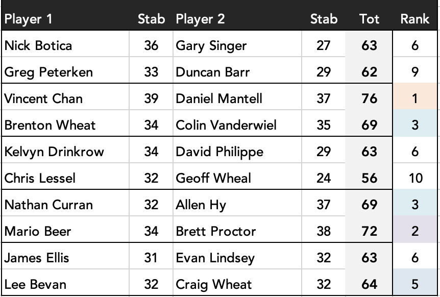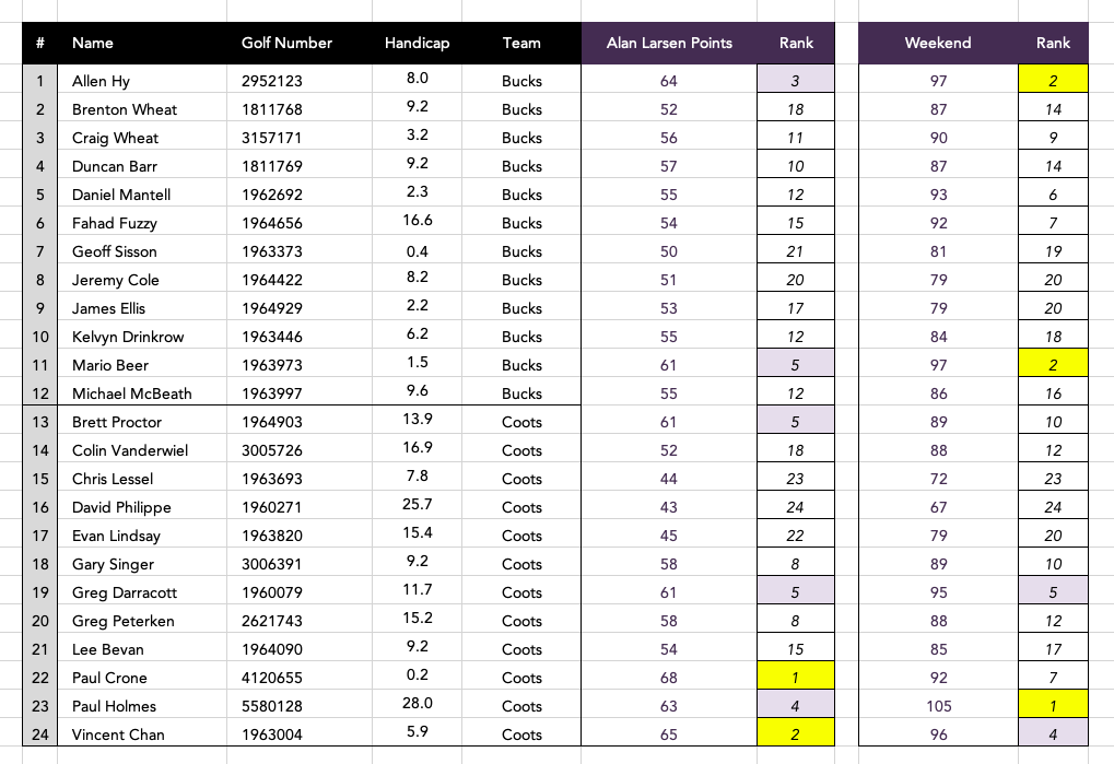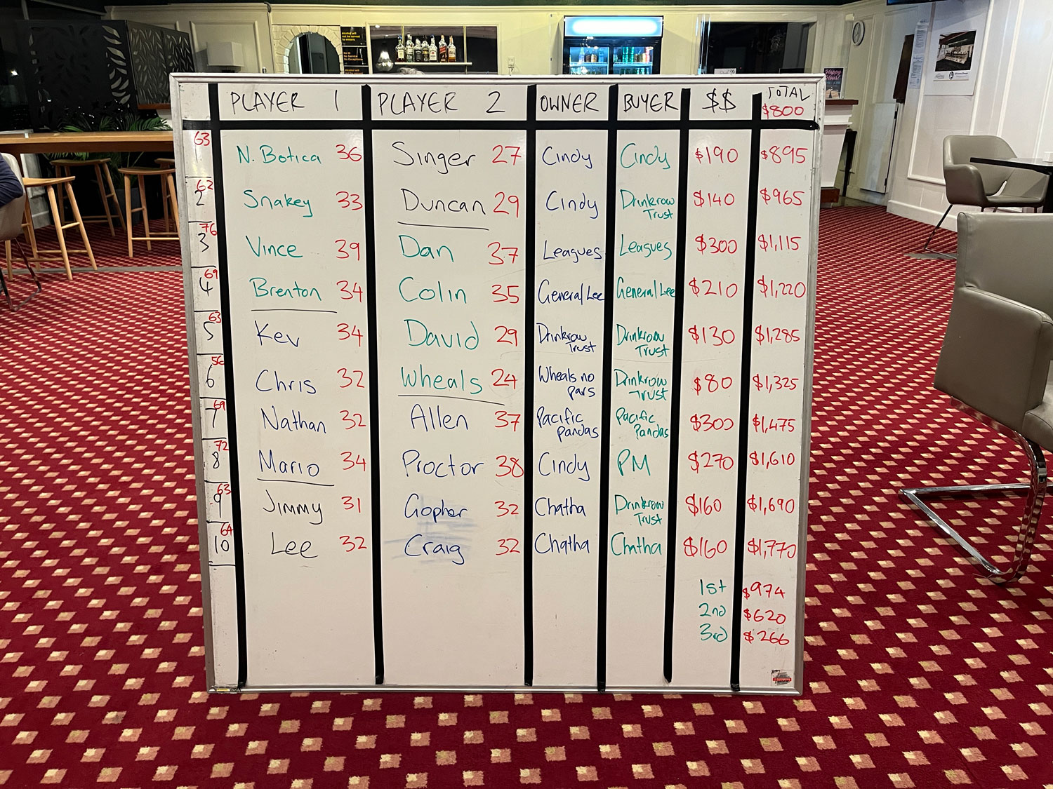 $5 a pick; This is betting on who will have the best combined stableford from the Saturday & Sunday rounds (effectively the Alan Larsen Trophy winner, followed by the 2nd placer).